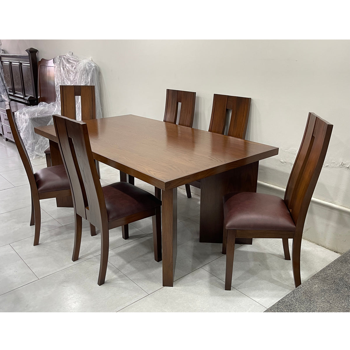 Made of solid wood and vinboard duly polished with six chairs.It can be made on order, color and size can also be customized.